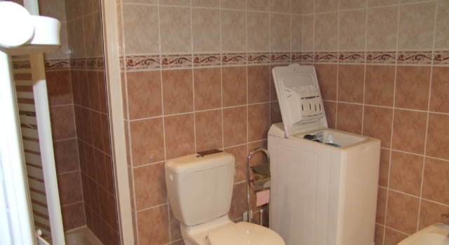 Détails des équipements : table, chaises, télévision, réfrigérateur, micro-ondes, lave-linge, hotte, batterie de cuisine, cafetière, grille-pain, bouilloire, etc …